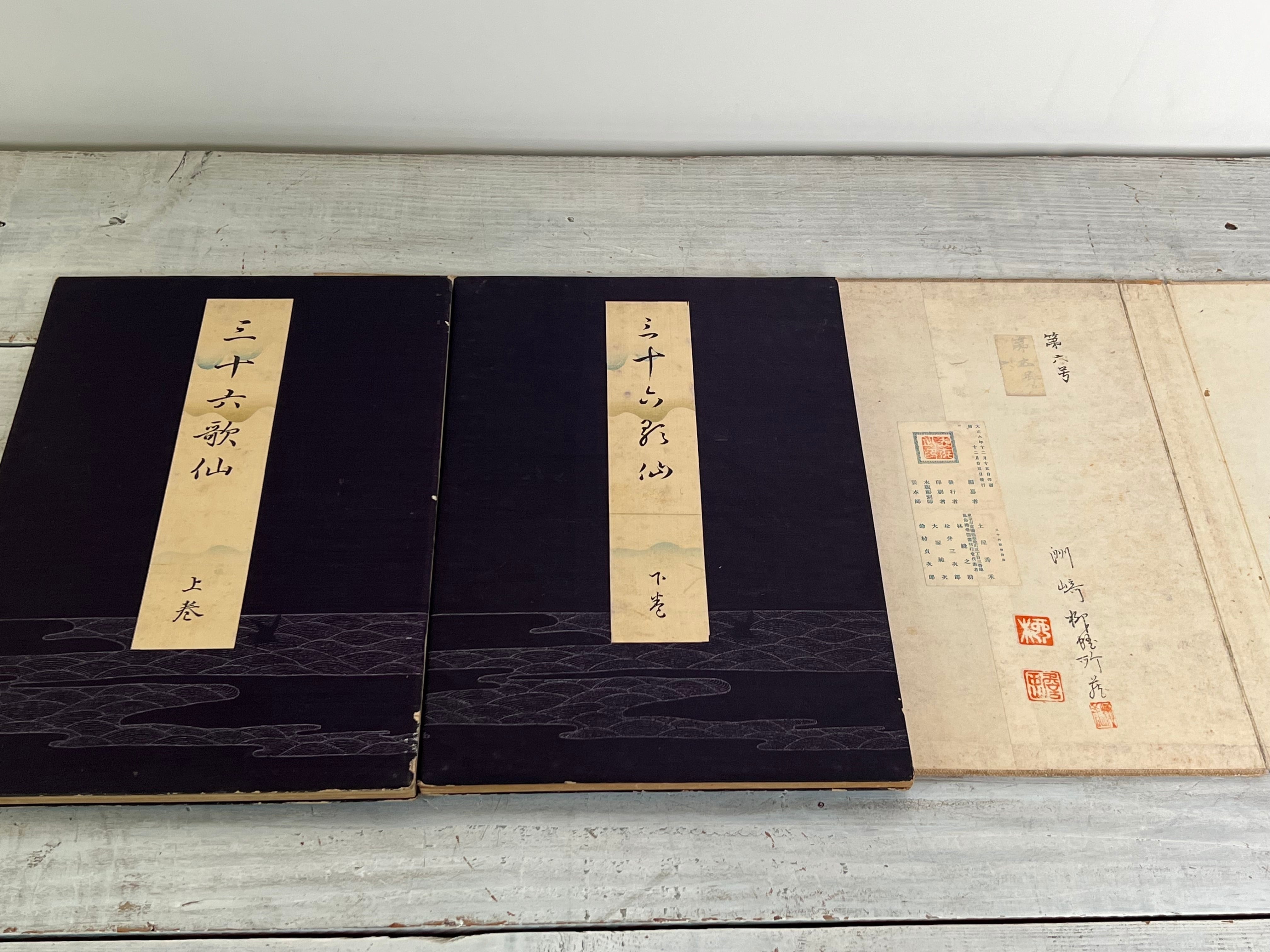 【1917ビンテージ】三十六歌仙絵巻 上下2巻セット 木版画 土屋秀禾編 大正6年