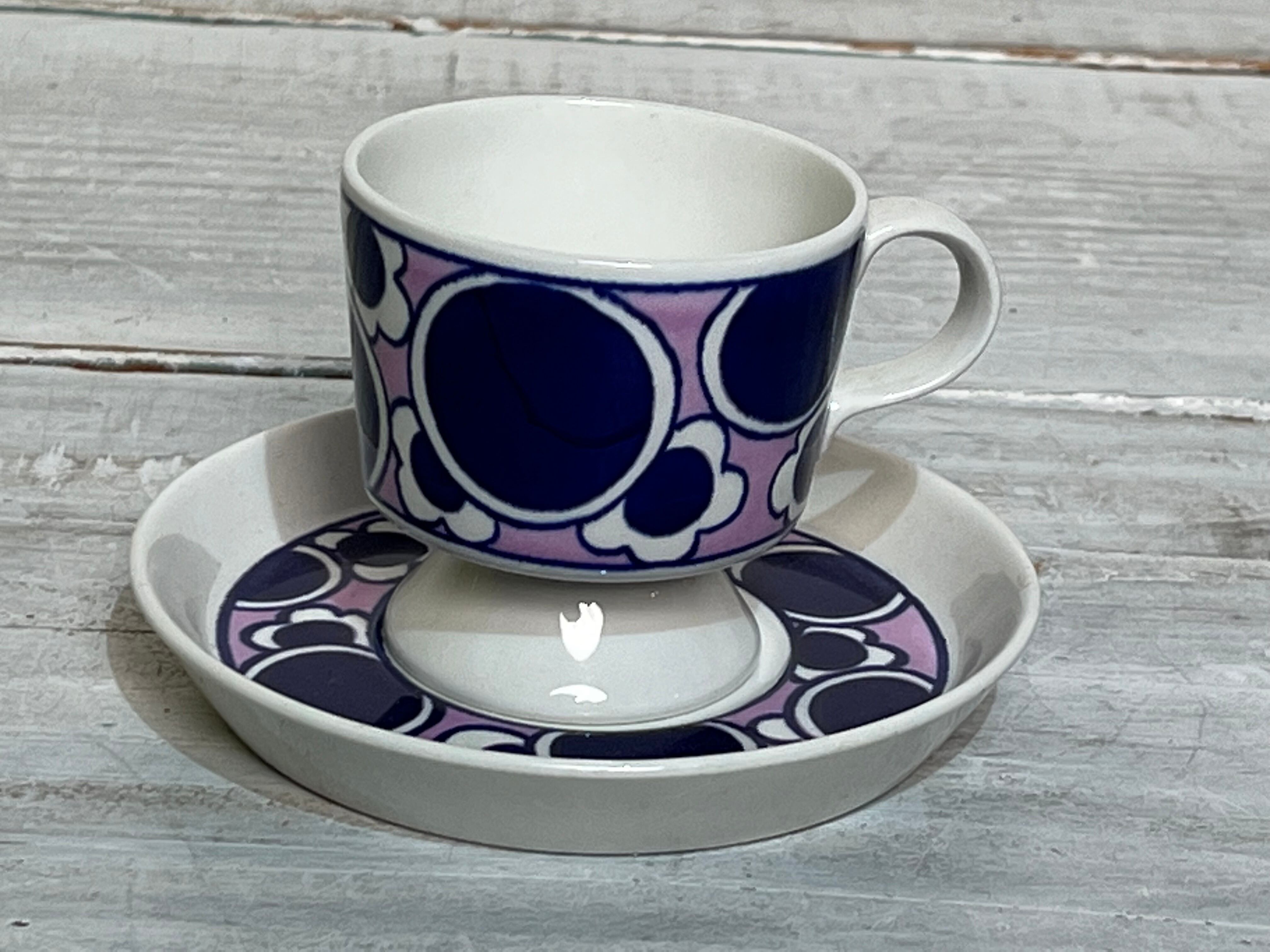 【1970年代 ビンテージ】アラビア ARABIA ステンシル パウリーナ 花・円 コーヒーカップ&ソーサーセット
